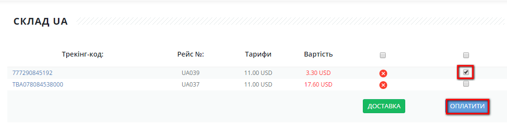 1. По прибуттю посилки на київський склад компанії, оплатіть інвойс за доставку: