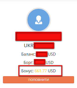 2. Після цього сторінка автоматично перезавантажиться і на Вашому бонусному рахунку опиняться 7% від сплаченої суми: